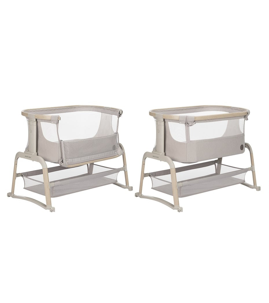 Having your newborn home, is such a special time. The Maxi-Cosi Iora Air is an extra-comfortable, soothing co-sleeper, designed to keep your baby close and deepen that special bond. A sumptuously thick mattress will provide all the comfort your little one needs. And for the more challenging nap times, a handy rocking-function will help soothe your baby back to sleep. Made with super-soft, premium, 100% recycled fabrics, the Iora Air features an all-round, breathable mesh fabric. And a large storage basket underneath ensures all your baby essentials are within reach, for around-the-clock care. WARNING: The product shall not be used before reading the instructions for use.The crib is not suitable for children who can sit or kneel or pull themselves up.Â