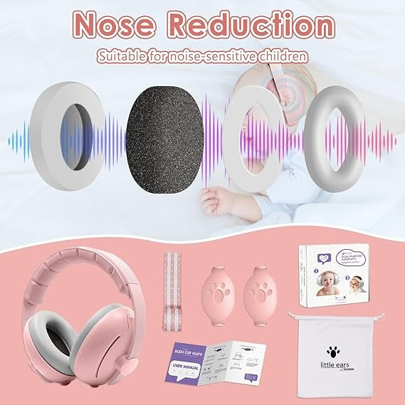 Guard your baby's hearing with style and care! Did you know that 1 in 8 children suffer from permanent hearing loss due to noise exposure? Our Sweet Pink Earmuffs are engineered specifically for the most delicate ears. With a thoughtful 2-in-1 design, these headphones grow with your child from infancy to toddlerhood, providing a "wall of silence" in a loud world.
