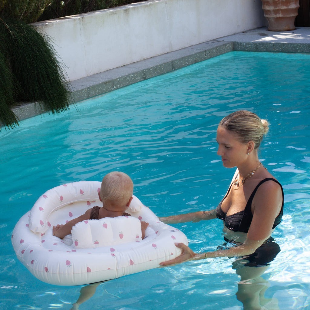 Indulge your little berry in delightful water play with the enchanting SUNNYLiFE Inflatable Baby Oasis! This adorable float, featuring a charming strawberry print, a protective mesh canopy, and engaging toys, creates a sweet and serene environment for your baby's earliest water adventures.