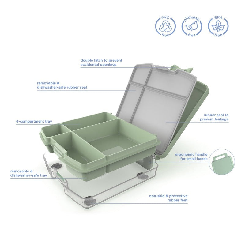 - Bento Box for Kids: Ubbi’s reusable Bento Lunch Box for kids is conveniently designed with 4 separate compartments, portioned perfectly for storing a variety of snacks and meals. Available in trendy colors including blush pink, sage green, and cloudy blue, adding a stylish touch to mealtime