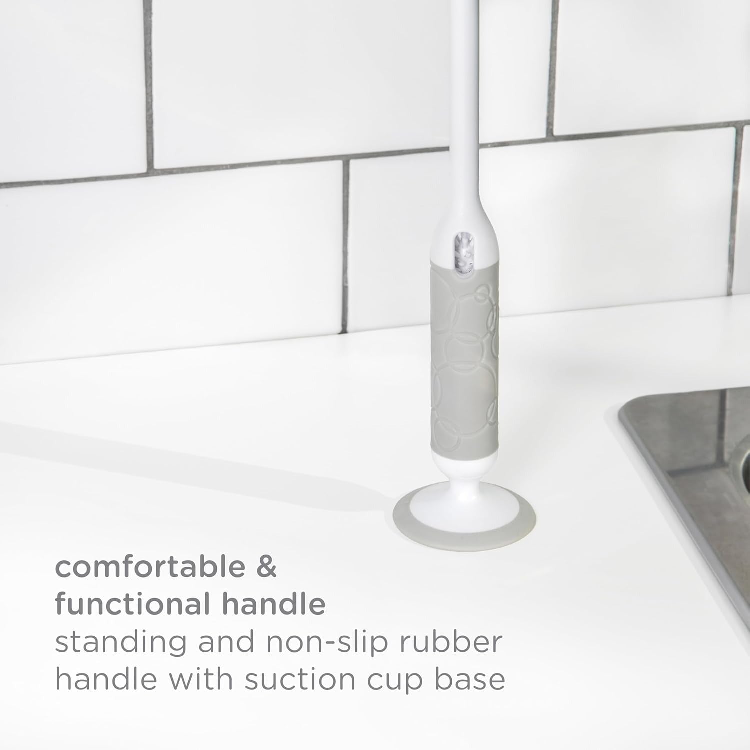 - Deluxe Standing Bottle Brush: Ubbi’s Deluxe bottle brush has been redesigned with a suction cup base, keeping the brush standing on your countertop to air out quickly and remain clean and hygienic. The comfortable, non-slip rubber handle provides optimal grip.