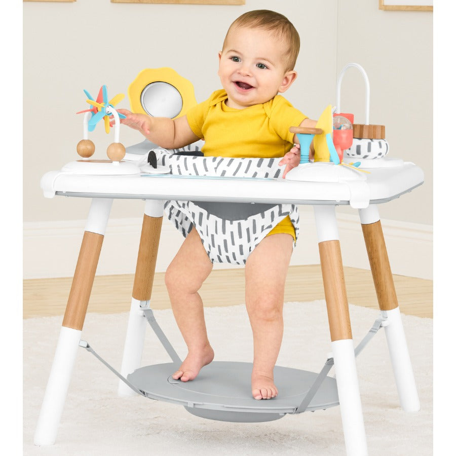 Nurture your little one's curiosity and development with the Skip Hop Discoverosity Activity Center. This innovative, Montessori-inspired design grows with your baby through three engaging stages. Starting as a supportive seat surrounded by stimulating toys, it transitions to a cruise-around center for early exploration, and finally becomes a versatile play table for toddler adventures.