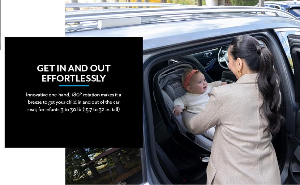 -Simplify In & Out: One-hand, 180° rotation makes buckling your baby stress-free.