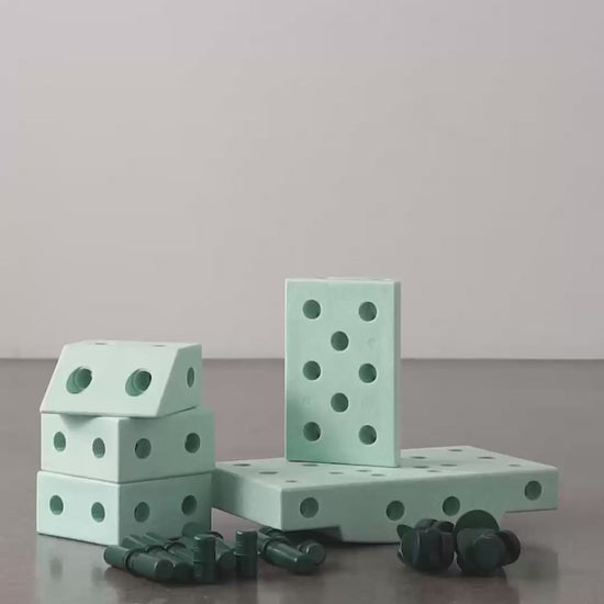 Take your MODU journey to new heights with the Explorer Set in the serene and stylish Ocean Mint / Forest Green colorway. This medium-sized set is designed for families who are ready to dive deeper into active play, offering a larger variety of blocks and pegs to keep up with your child's growing imagination and physical skills.