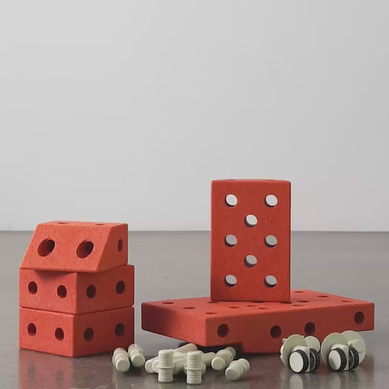 The Explorer Set from Modu is a colorful building set that opens up creativity. With this set, your child can build at least 15 different creations - and there's room to discover many more! With durable, safe materials and modular designs, your child can build everything from whizzing walkers to fun swing animals and challenging balance and rocking toys. The Explorer set stimulates active play for young and old alike, promoting motor development and immersion - and there's plenty of fun for the whole family!
