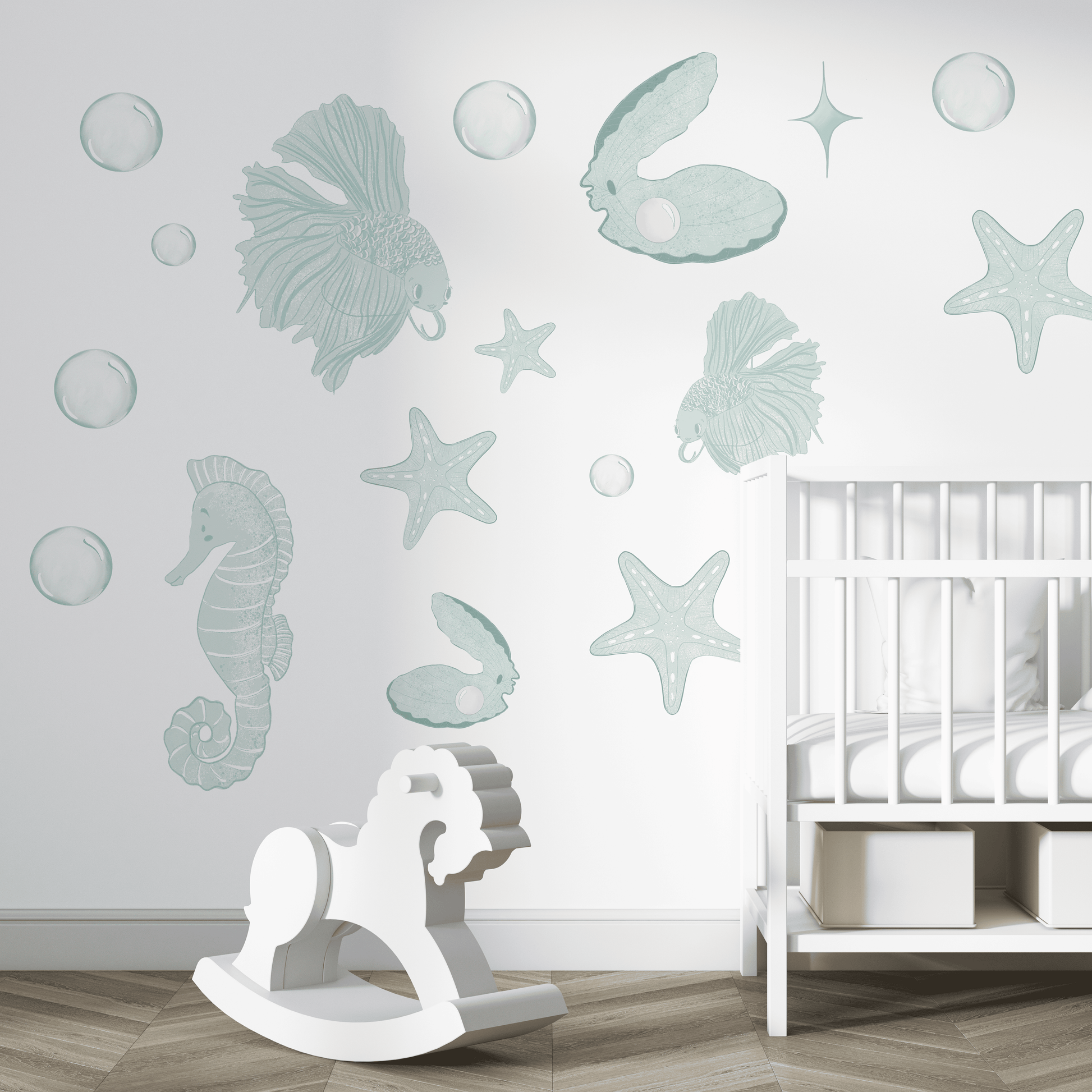 An ocean of dreams awaits with our vibrant blue seaworld sticker set. 70*150. Vinyl (high quality wall sticker material). As we are a conscious brand, all our products are print on demand, so please allow 7 business days for order fulfillment & delivery.