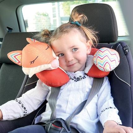 - The cushion can be placed around him, placed on his knees, he can play with different activities and it can then be used as a travel cushion to put around his neck when traveling.