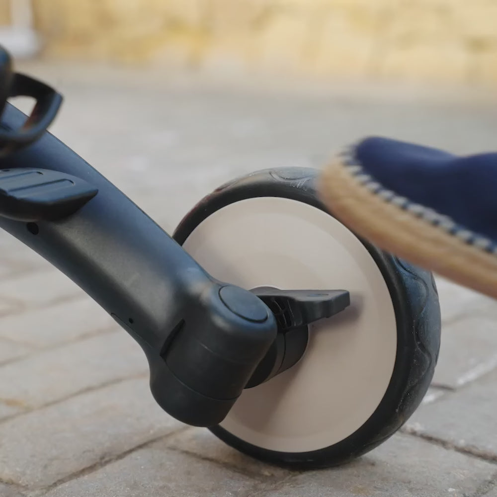 Initially, parents can steer the bike with the adjustable push bar, while the 360° rotating CLICK&TWIST seat ensures easy contact with your child. As your child grows, parts such as the parent handle, footrests, and backrest can be removed to transform the vehicle into a classic tricycle and eventually a balance bike.