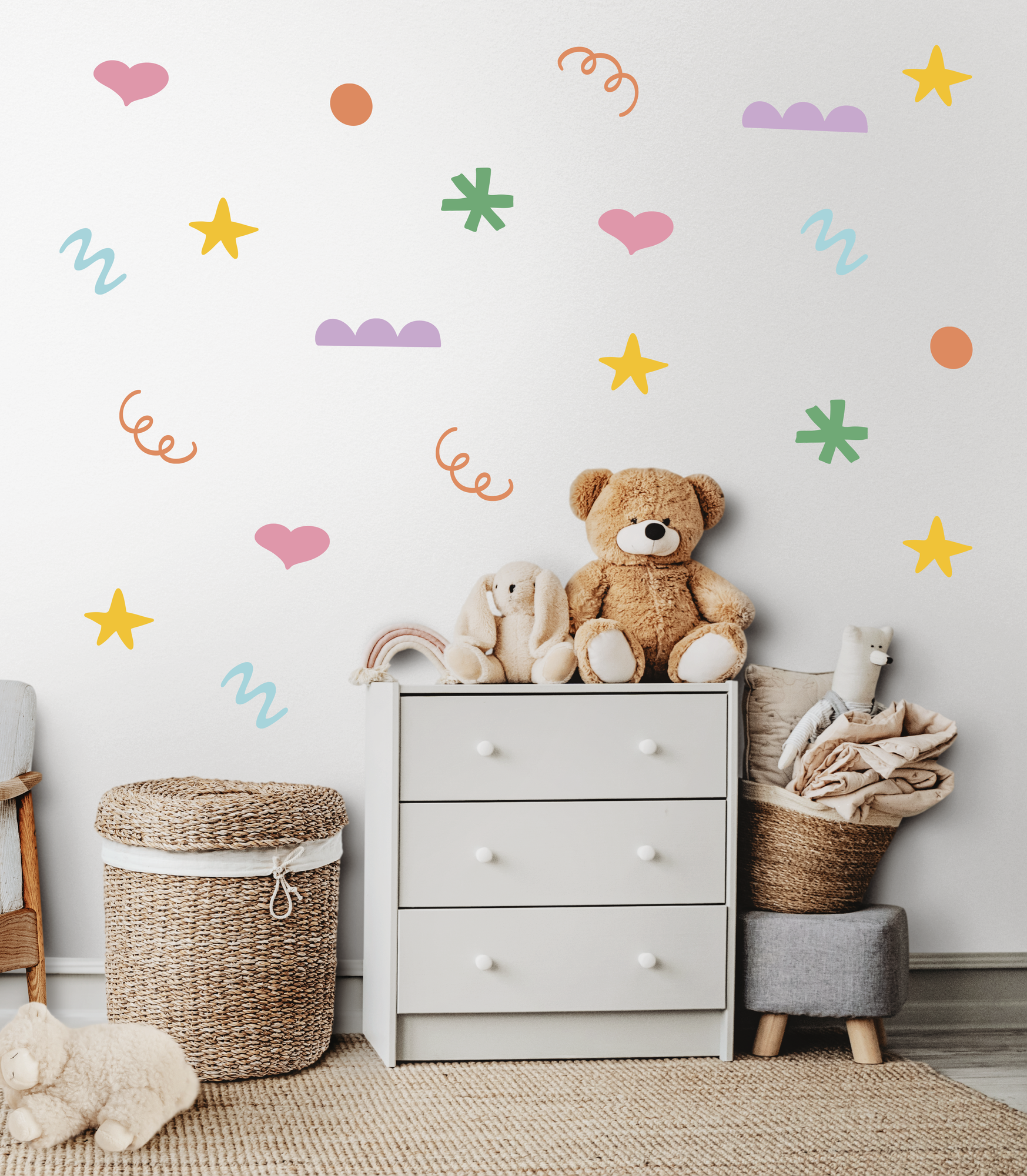 Fun shapes and bright colors to make creativity come alive on every wall. 60*150. Vinyl (high quality wall sticker material). As we are a conscious brand, all our products are print on demand, so please allow 7 business days for order fulfillment & delivery.