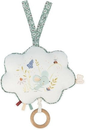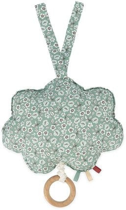 Share a special moment with baby. Let the discovery begin! The delicately printed and embroidered fabric music box on the theme of "Twinkle, Twinkle, Little Star" is a key element for baby's development. Indeed, if you pull the wooden ring at the end of the string, you will hear the nursery rhyme "Twinkle, Twinkle, Little Star" so you can sing it to baby. Its small size of 15 cm and its ribbon allow you to take it and hang it anywhere. The musical box is waterproof so you can easily wash it by hand without risk.