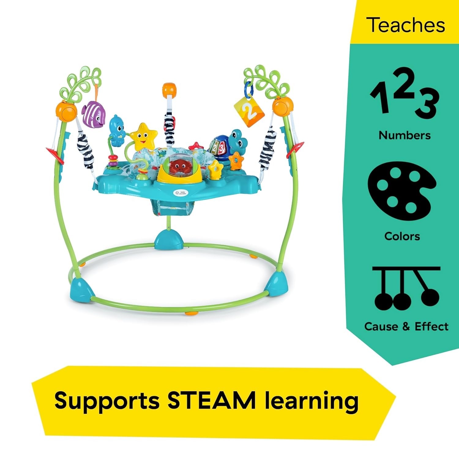 - The Baby Einstein Curiosity Cove is a 2-in-1 activity jumper for ages 6 months to 1 year that encourages baby’s sensory exploration with lights, music, and ocean sounds