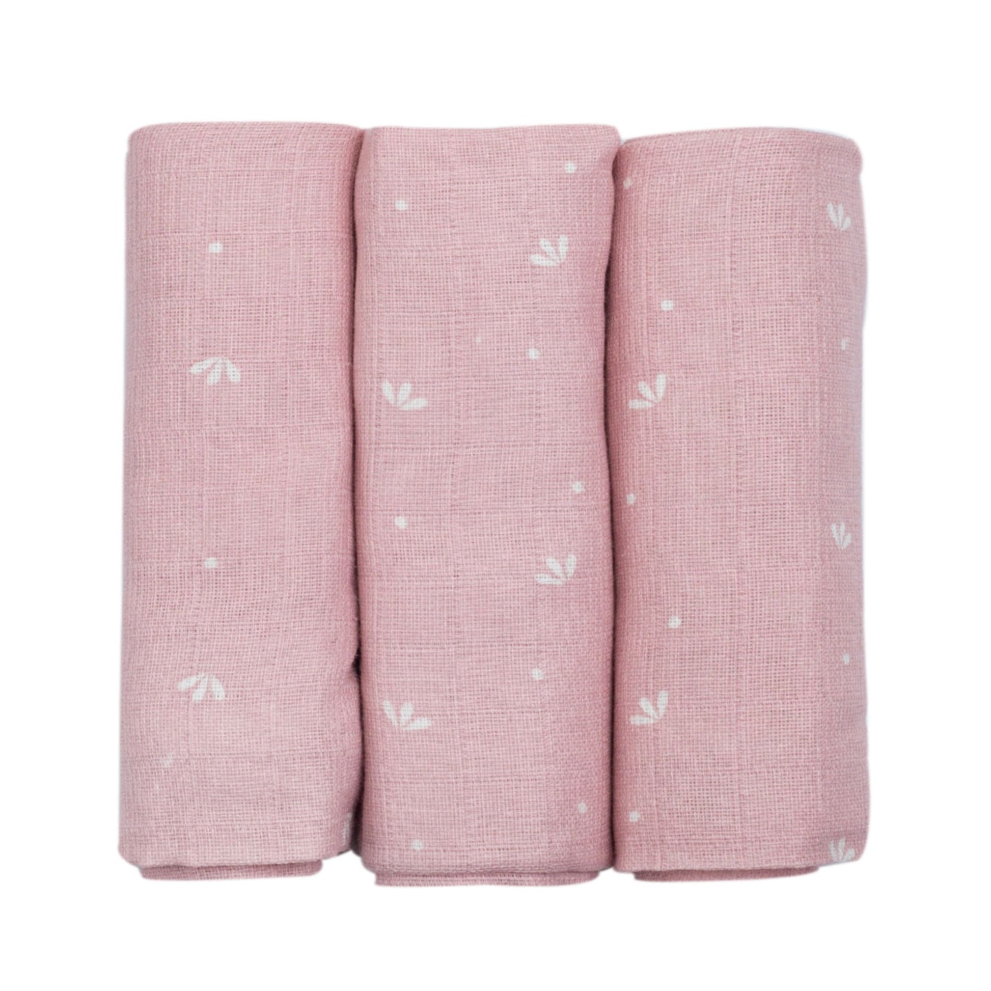 - Set of Three Pink Swaddles: Includes three beautifully soft muslin swaddles in charming shades of pink.