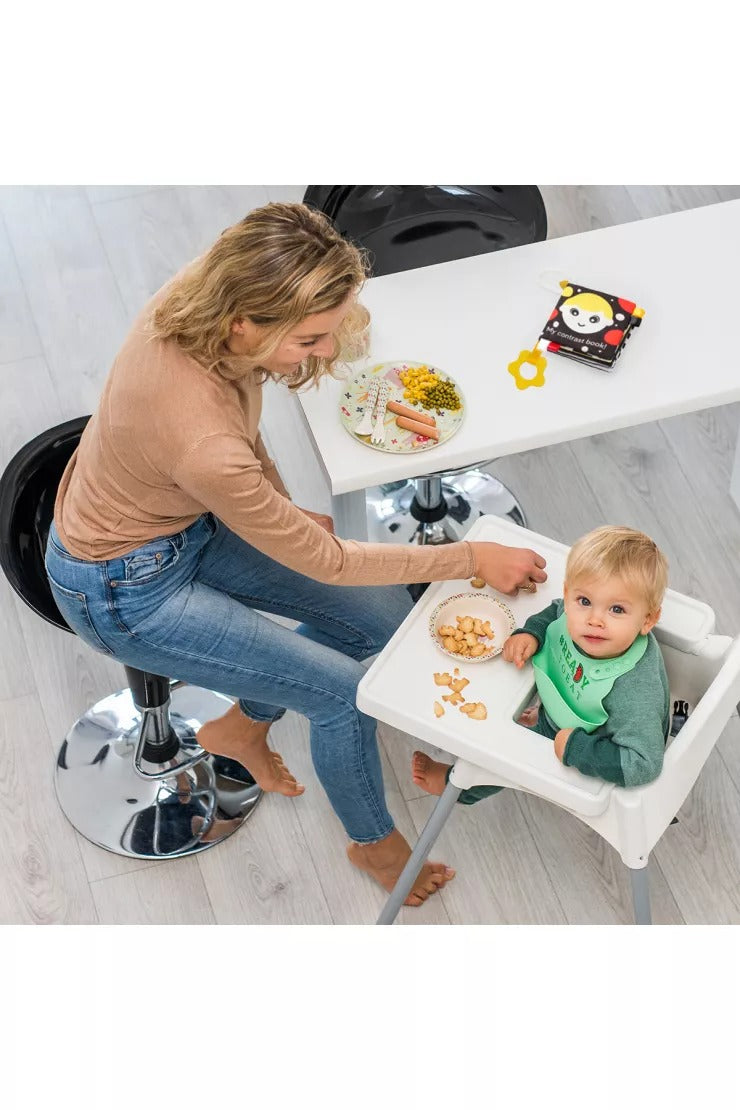The toy is kept in clear, contrasting colours that develop the sense of sight, imagination and the ability to concentrate. It will accompany the child in the first stages of development, responding to new cognitive needs.