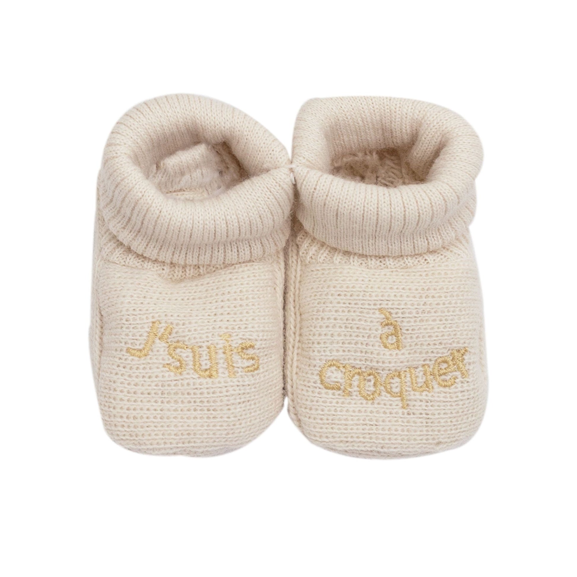 Get ready for irresistible cuteness with our Trois Kilos Sept "J'suis à Croquer" Baby Booties! This adorable 4-pack features cozy booties embroidered with the sweet French phrase "J'suis à Croquer," meaning "I'm so yummy I could be eaten up!" Perfect for adding a touch of charm to your little one's outfits.
