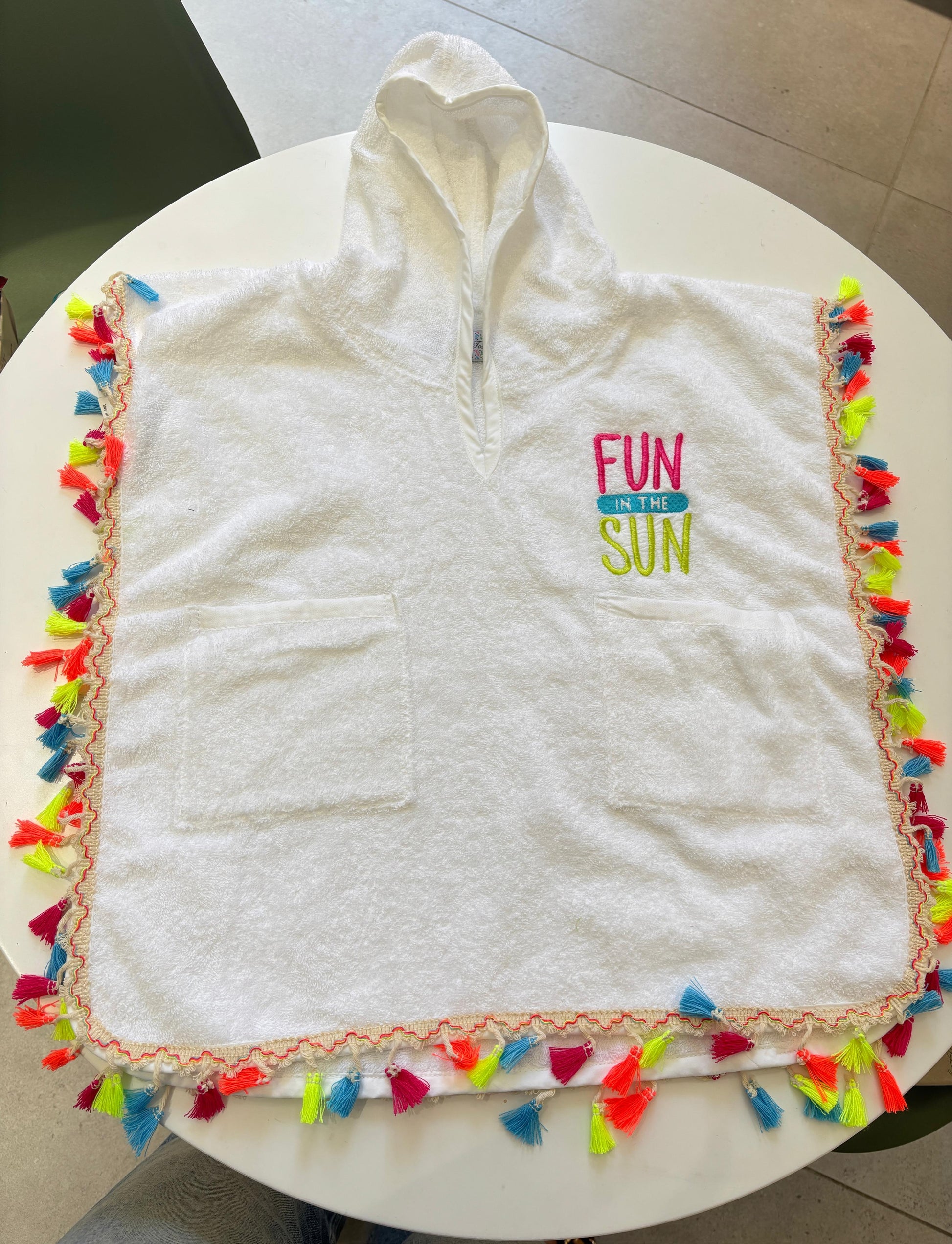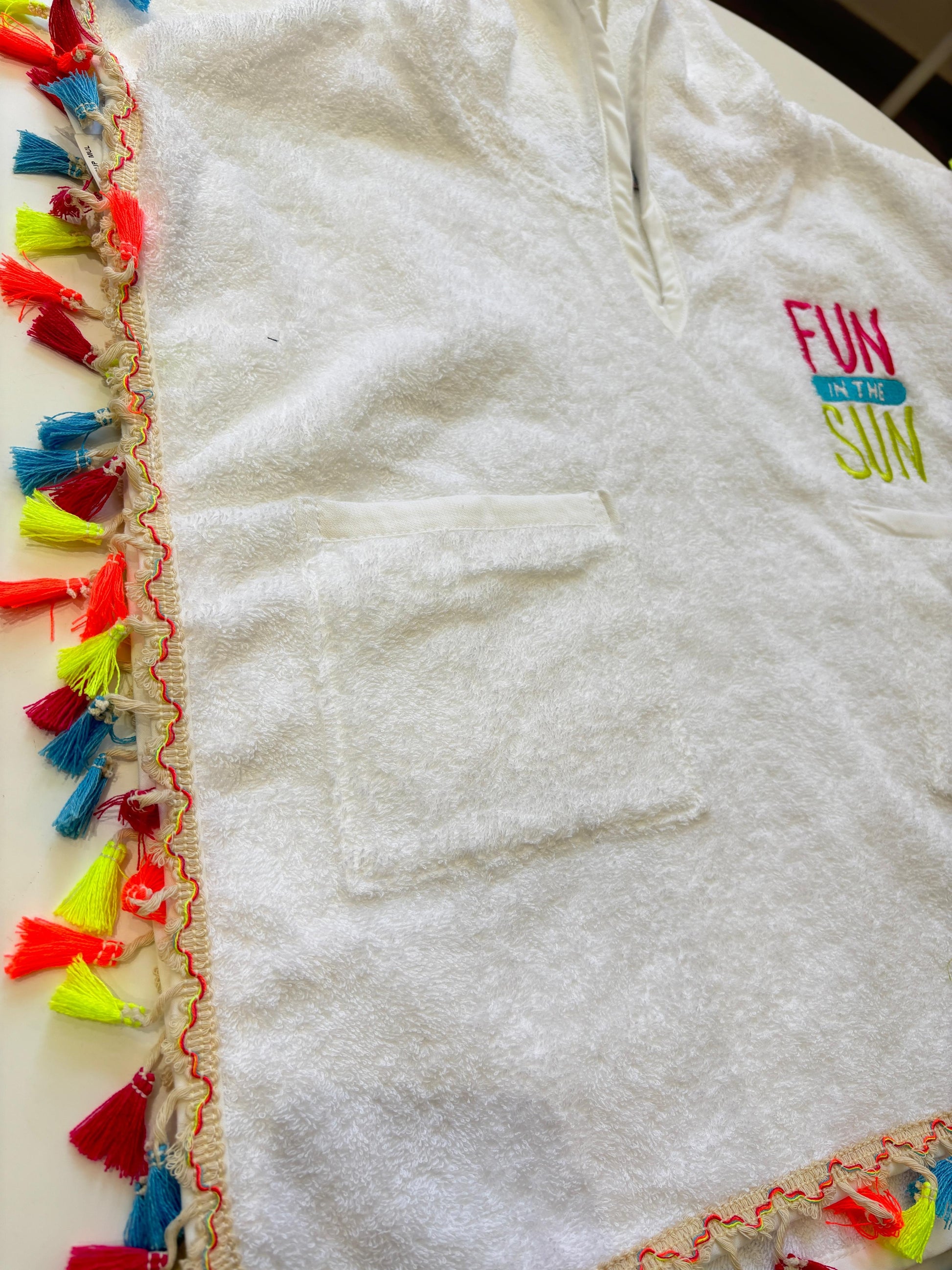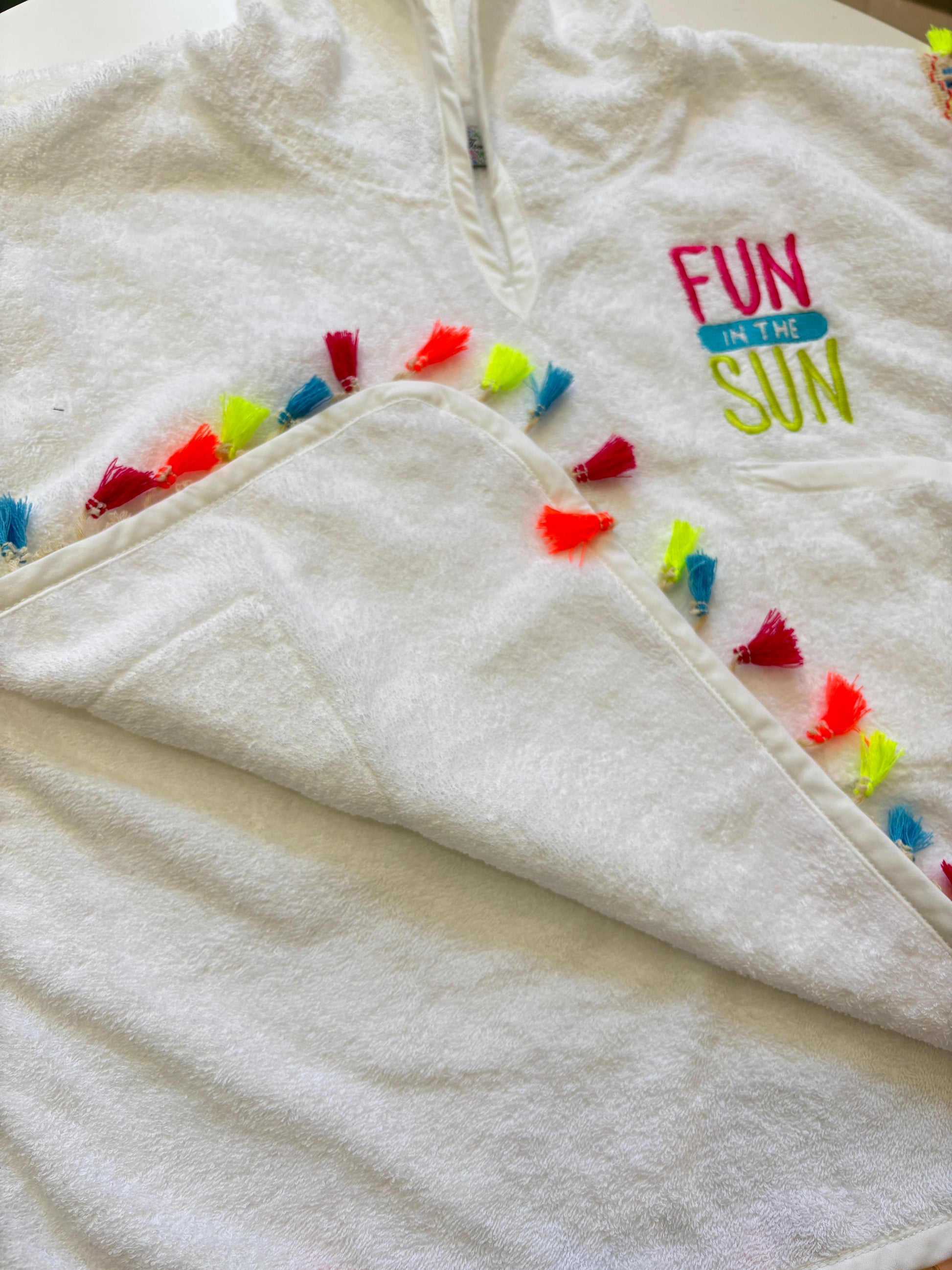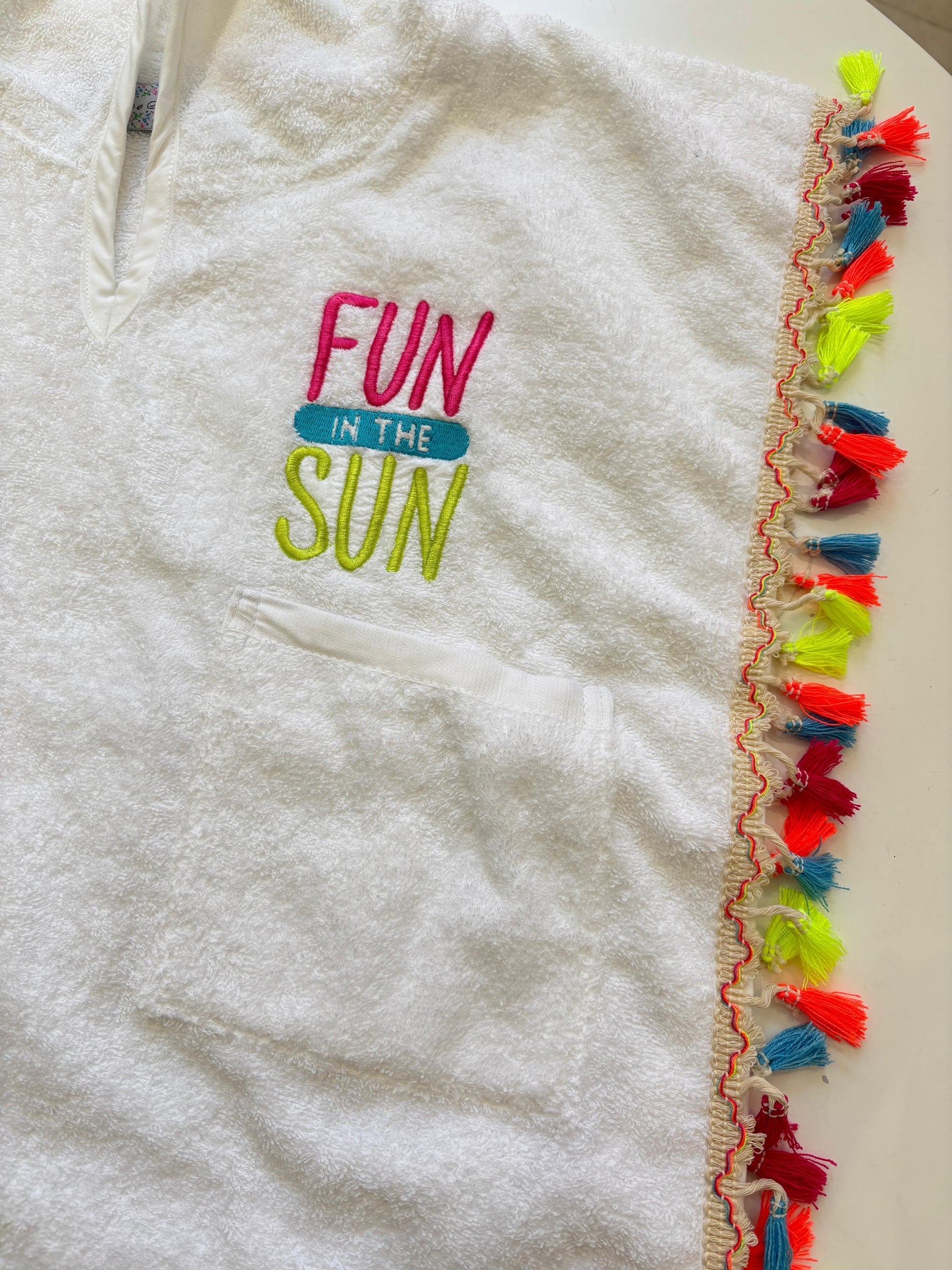 Bring on the good times! Add this charming "FUN IN THE SUN" Hooded Poncho to your cart today and let the cheerful drying begin!