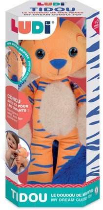 Discover Tidou, the cuddly toy of my dreams, a soft and cuddly companion imagined and co-created by children, for children! At LUDI, we believe that the best ideas come from the imagination of the youngest, which is why we decided to give them a voice. After designing the cuddly toy of their dreams, the children participated in a series of creative workshops to define the essential characteristics of its appearance: its shape, its colors, and its textures. The result? Tidou, an adorable tiger/cat in bright and cheerful colors, with soft and silky fur. Its characteristics are the result of a collective choice: