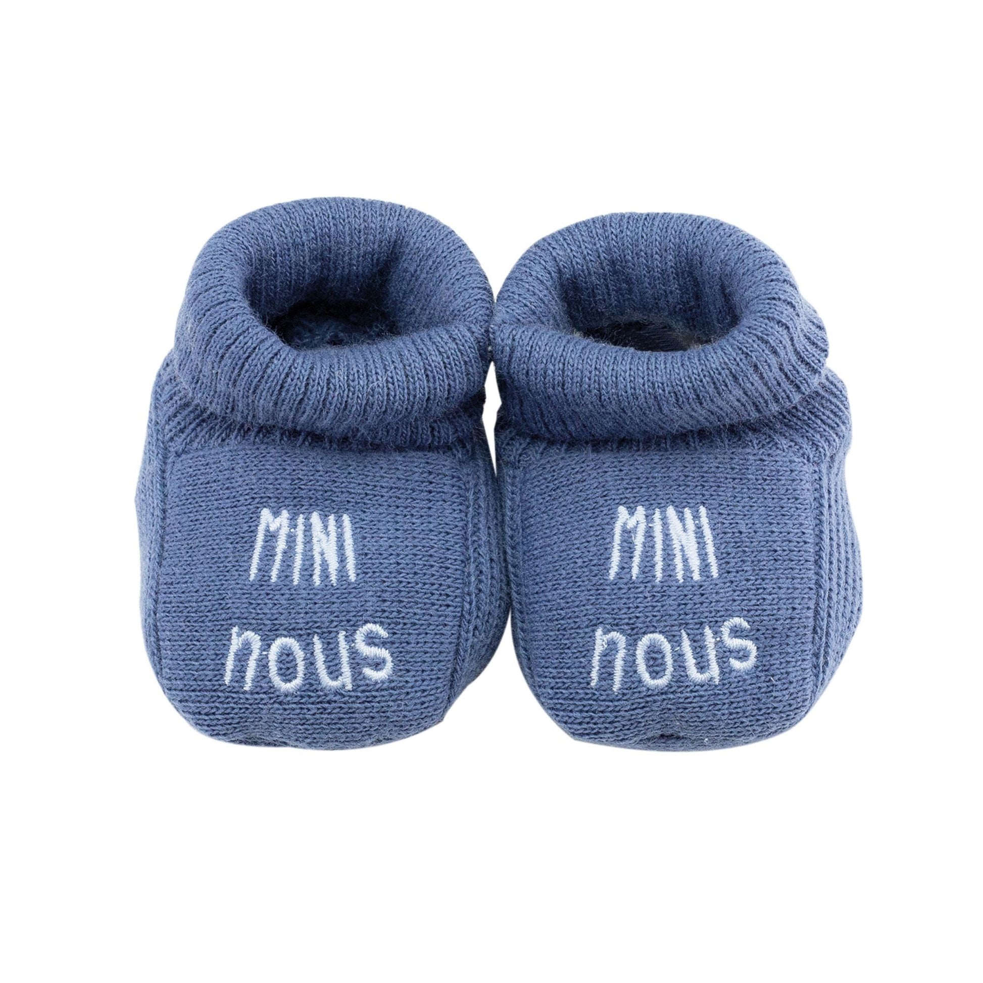 Dress your little "mini us" in adorable style with our Trois Kilos Sept "Mini Nous" Baby Booties! This charming features cozy booties embroidered with the sweet French phrase "Mini Nous," meaning "Mini Us." Perfect for celebrating your precious little one as a beloved part of your family.