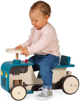 Small tractor without pedals, ideal for developing the child's motor skills and balance. It will help them better manage their support while allowing them to discover the world around them. It also has a built-in horn to warn of its arrival!! In addition, thanks to its 4 rubber wheels, this ride-on will ensure its safe hold. Wooden toy for children from 12 to 36 months.